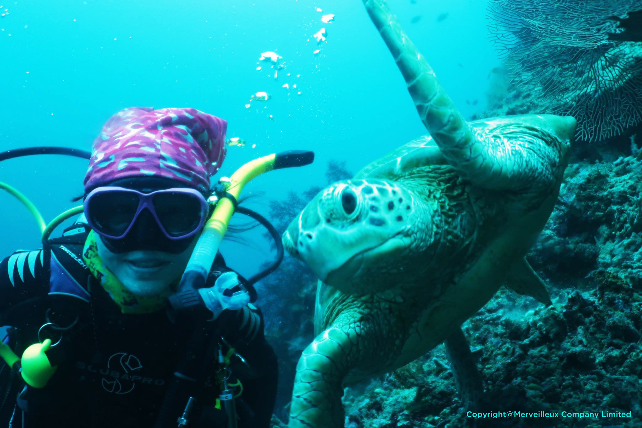 為了想要到繽紛多彩的海底世界「邂逅」令她神魂顛倒的海龜,從小很怕水不會游泳的 Joe,雖已年過中年,還是硬著頭皮報名了潛水課程。每周她會到泳池學游泳,一來降低對水的恐懼;二來是為取得潛水專業執照做準備,因為 Joe 認為專業訓練可以令她這個不諳水性的人安全地潛水。