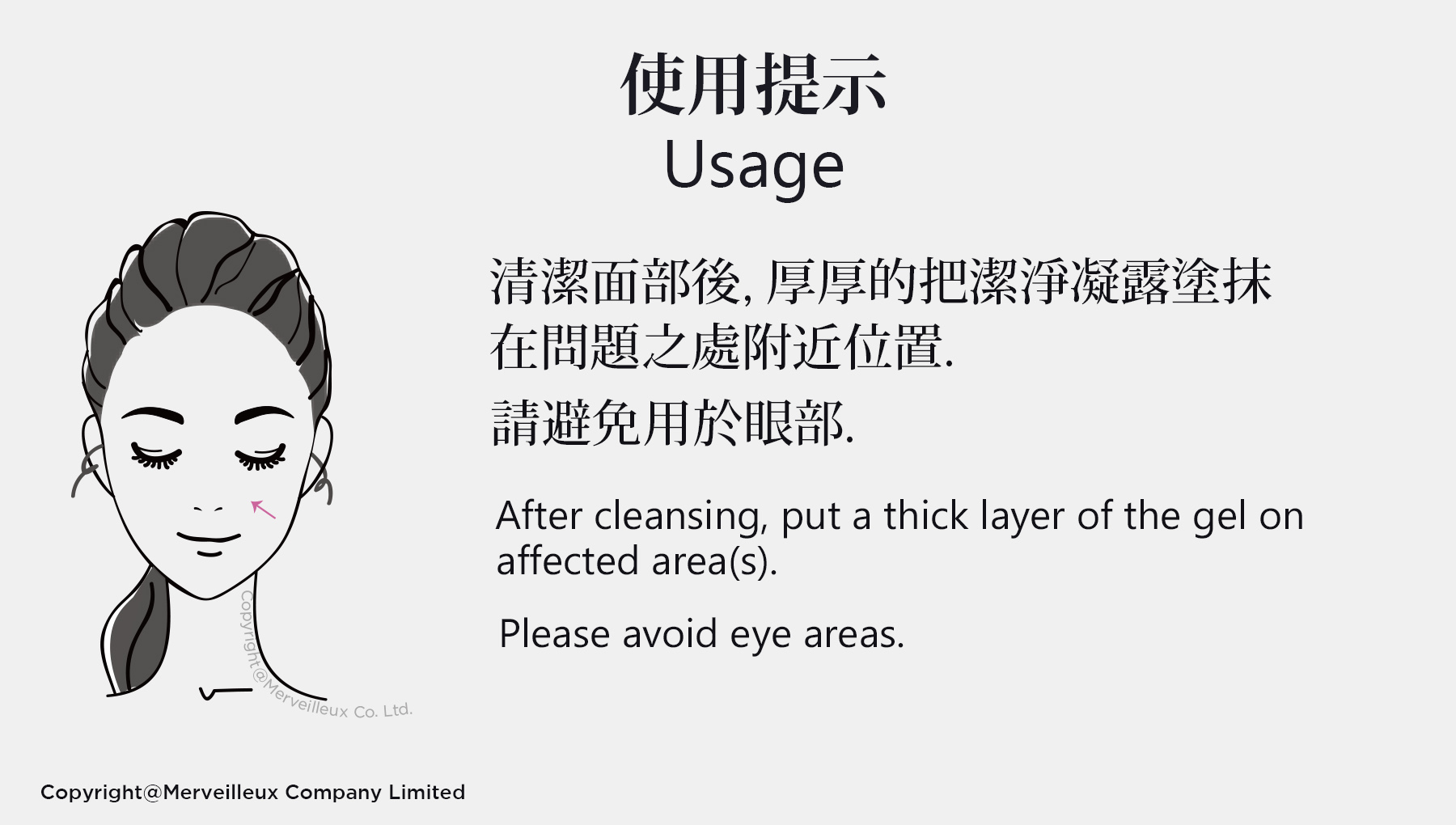 注入高濃度生物科技及植物成份的天然啫喱, 幫助調節皮脂分泌, 溫和及有效地改善肌膚問題如暗瘡/粉刺及黑頭, 減少紅印, 鎮靜消炎及協助皮膚復原.