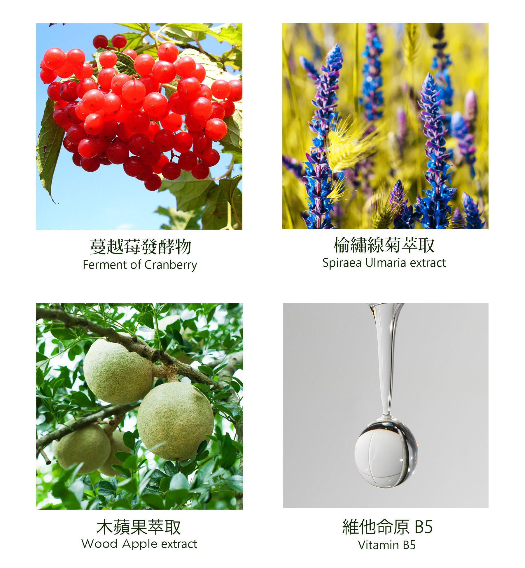 • 蔓越莓發酵物: 幫助溫和去除死皮及皮膚更新
