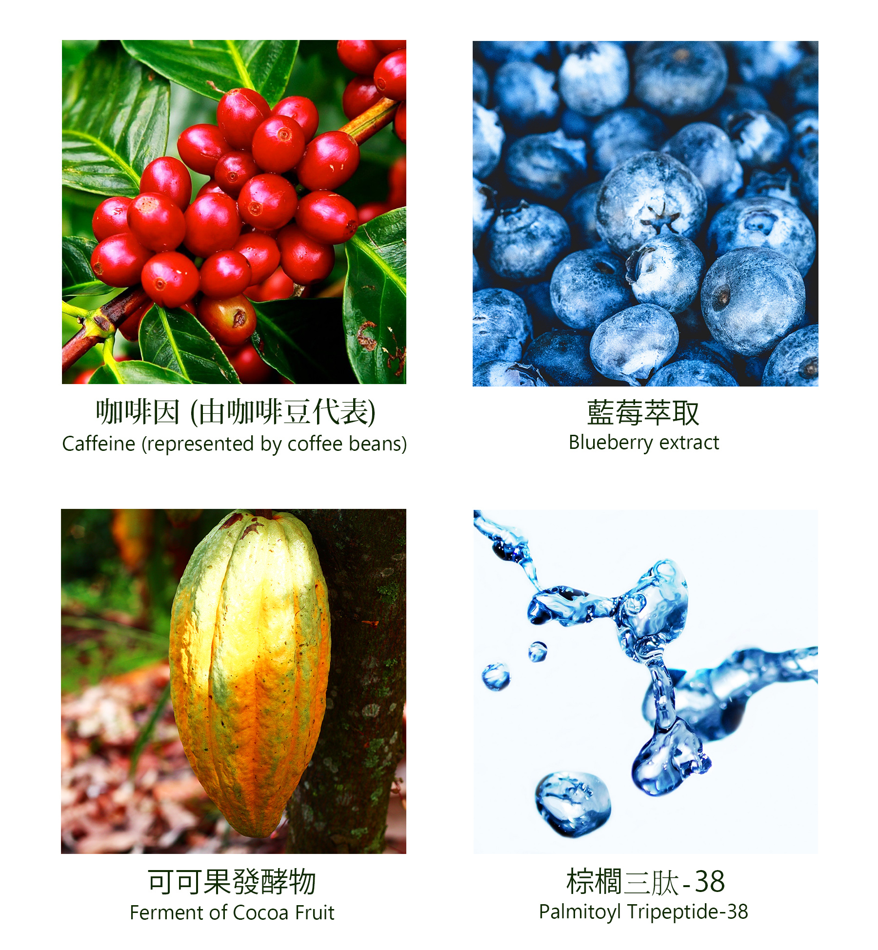 • 咖啡因 : 幫助增加微循環, 減輕眼部浮腫