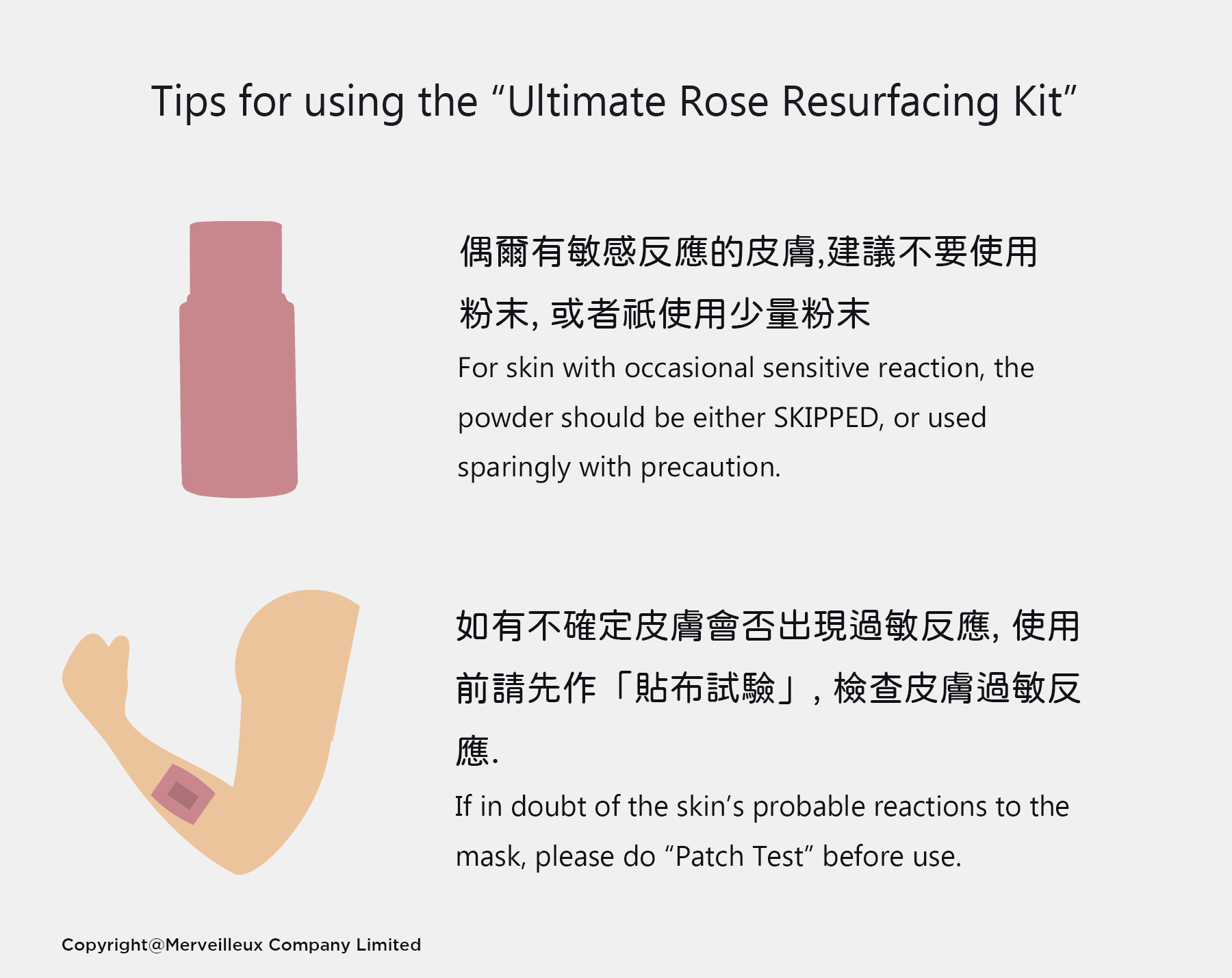 此套裝包括終極玫瑰煥膚面膜和終極煥膚粉。此套裝適合油性、 閉塞、混合性、 缺水、乾燥及成熟膚質。 不建議用於敏感和脆弱的皮膚。