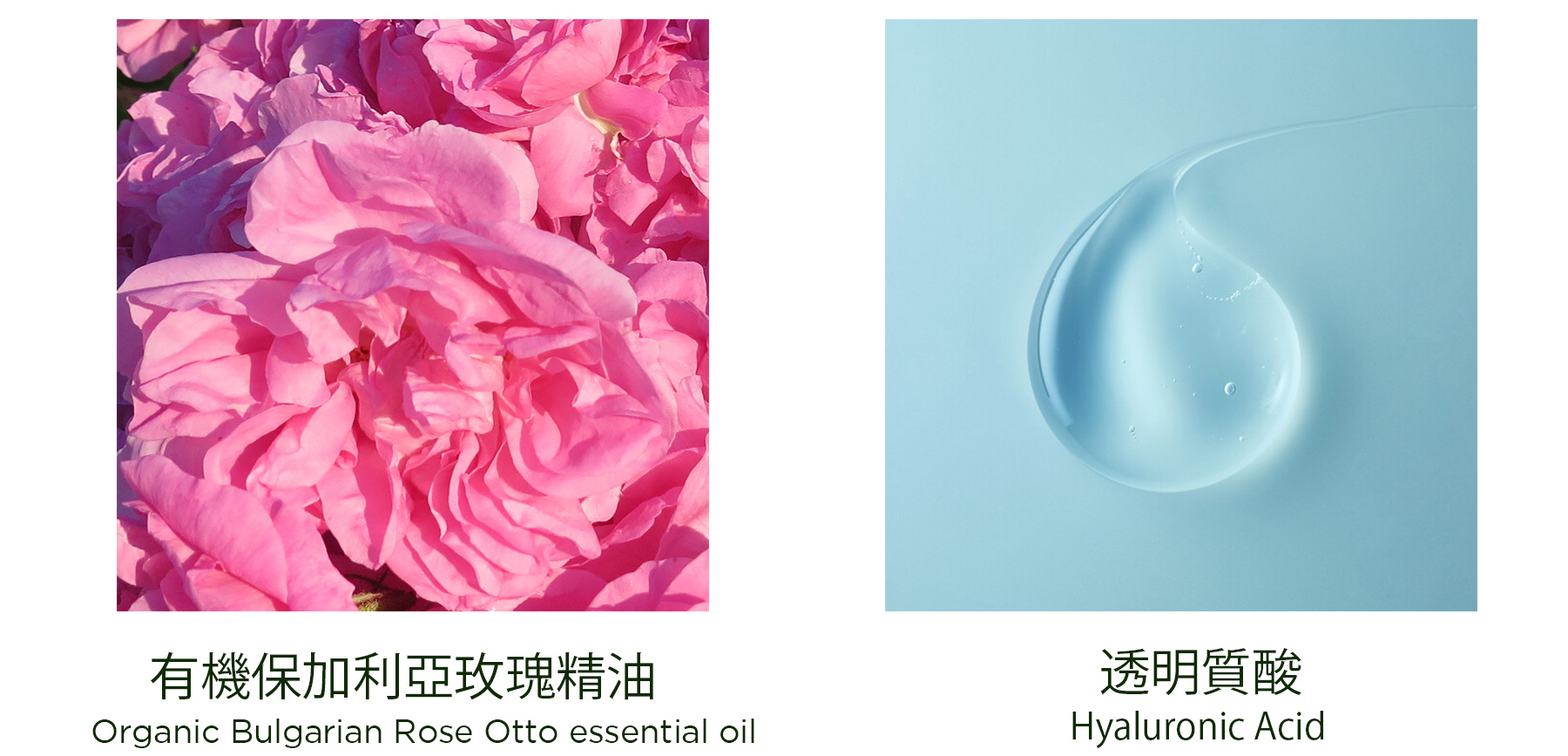 • 有機保加利亞玫瑰精油: 幫助促進細胞再生, 鎖水保濕~~