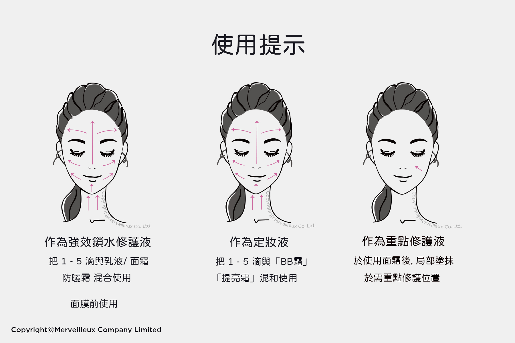 ✽ 與乳液混合可以增強保濕「鎖水」功效, 防止水分從皮膚表面流失, 是長期在冷氣地方工作生活的人的必備護膚品。你可以根據你的皮膚實際所需而使用不同份量的「精華油」去增加乳液的滋潤程度。令皮膚保養從始更方便、有彈性和效率。