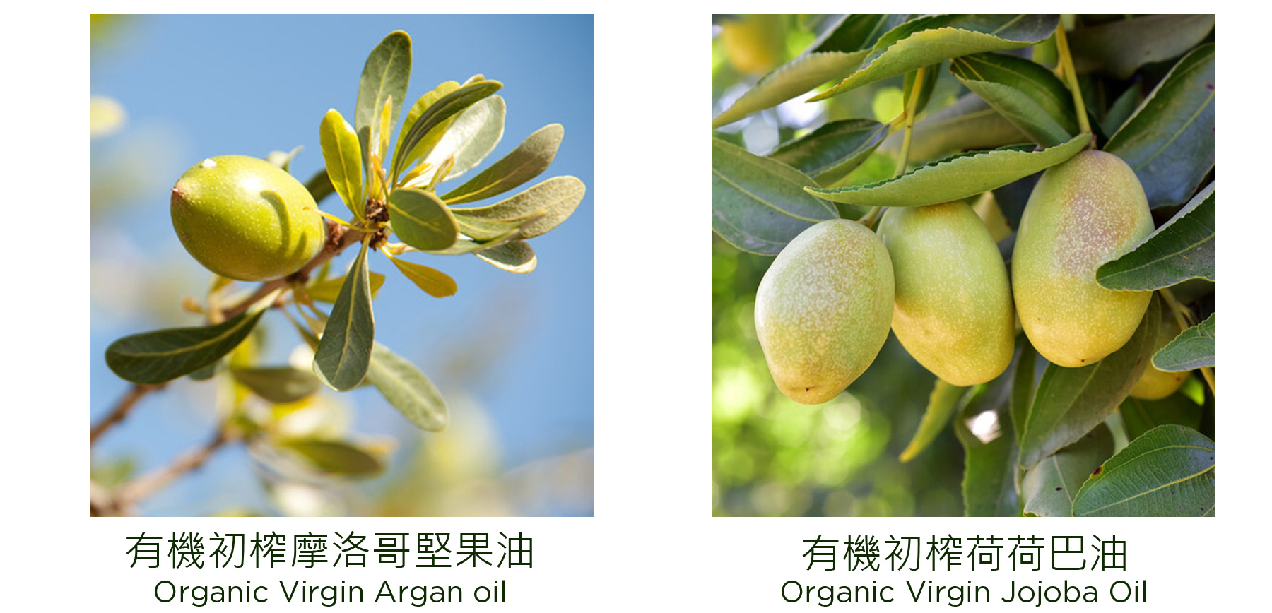 • 有機乳木果油: 有助於再生及滋養皮膚, 減少陽光的損害和減淡皺紋
