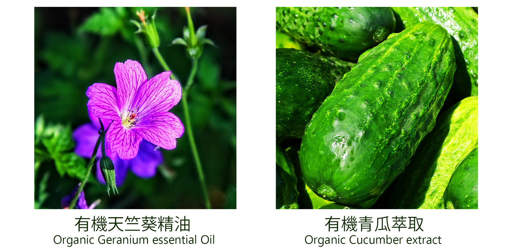 • 有機青瓜萃取 : 幫助保濕, 舒緩及緊緻皮膚
