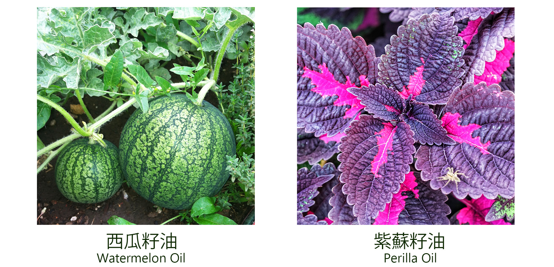 • 西瓜籽油 : 幫助滋潤肌膚, 並平衡其油脂分泌