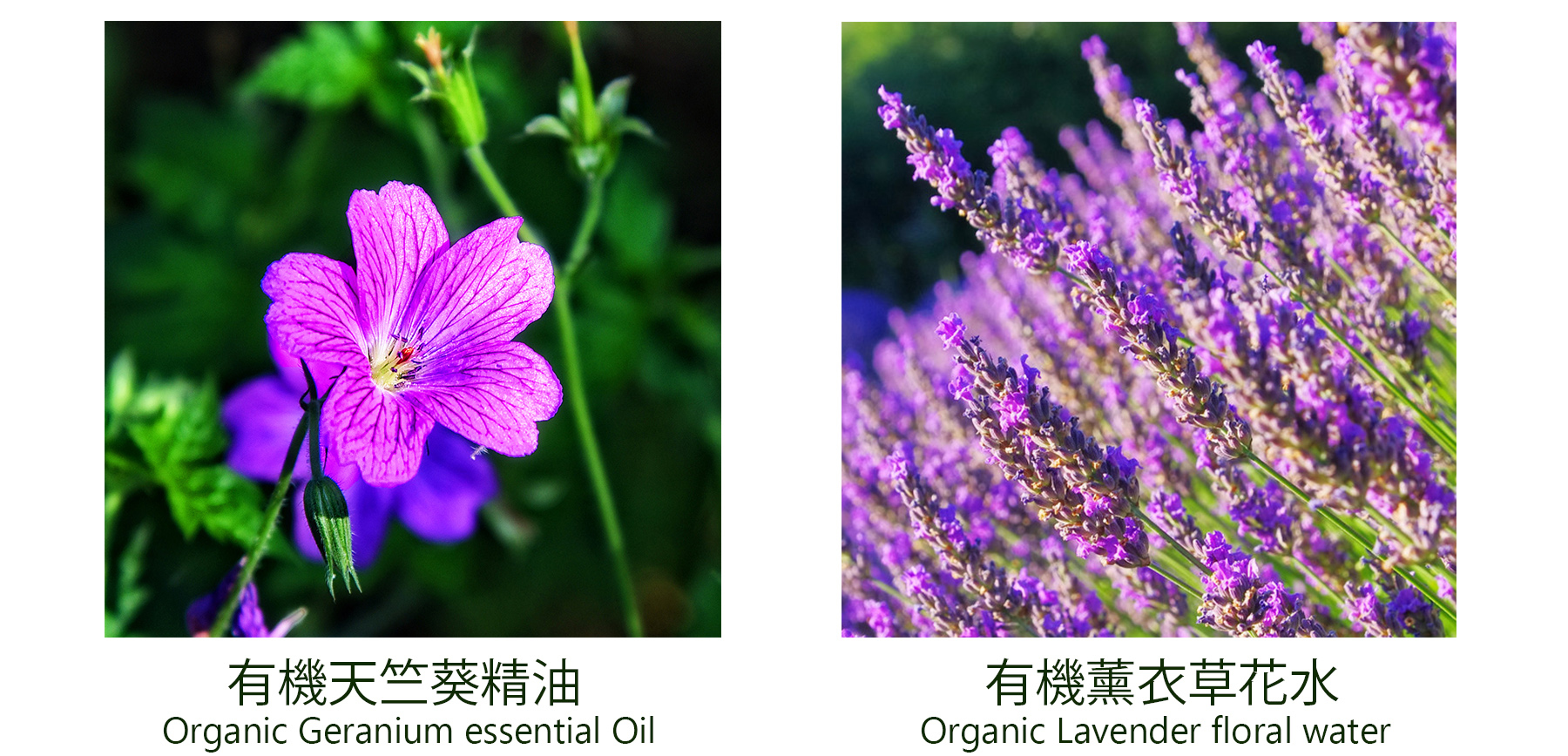• 有機薰衣草花水 : 舒緩和鎮靜皮膚